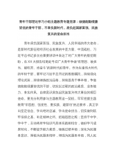 青年干部理论学习小组主题教育专题党课:做德能勤绩廉皆优的青年干部,不辜负新时代,肩负起国家富强、民族复兴的使命担当青年肩负国家富强、民族复兴、人民幸福的伟大使命,是新时代新征程经济社会发展的中坚力量、中流砥柱。习近平总书记多次在重要讲话中表达了对广大青年的殷切期盼,在XX大报告结尾处号召广大青年争做“有理想、敢担当、能吃苦、肯奋斗”的新时代好青年。作为生逢伟大时代的年轻干部,要牢记习近平总书记的殷殷嘱托,持续强化理论武装,持续锤炼政治品格,持续提高干事本领,争做德能勤绩廉皆优的干部,切实以过硬的政治素质、业务能力、务实作风、自律意识肩负起民族复兴伟大事业的艰巨使命。要充分利用参与主题教育这一契...