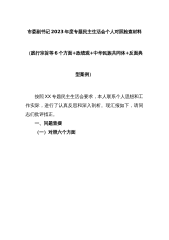 市委副书记2023年度专题民主生活会个人对照检查材料(践行宗旨等6个方面+政绩观+中华民族共同体+反面典型案例)按照XX专题民主生活会要求,本人联系个人思想和工作实际,进行了认真反思和深入剖析。现汇报如下,请同志们批评指正。一、问题查摆(一)对照六个方面1.学习贯彻XX方面。一是理论学习不够全面。在深入领会XX实质方面仍缺乏一以贯之的自觉性,对党的最新政策理论的整体性把握仍有不足,存在急用急学、现用现学畸轻畸重的问题。比如:对XX等必学科目以及自己分管的全面从严治党、农业发展、深化改革等方面学习多,对经济建设、营商环境、生态环保等内容学习相对较少。二是学用结合不够紧密。运用贯穿XX的立场观点方...