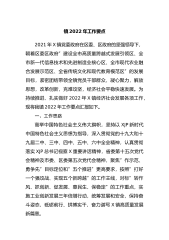 镇2022年度工作要点2022年全镇经济社会发展的主要预期目标:地区生产总值达到xx.x亿元,同比增长x.x%;地方财政收入达到xxxxx万元,同比增长xx%;地方税收收入达到xxxx万元,同比增长xx%;完成固定资产投资xx亿元,同比增长xx%;工业产值完成x.x亿元,同比增长xx%;一般公共预算收入计达到x.x亿元,同比增长xx%;全体居民人均可支配收入达到x.xx万元、增长x%。2022年全镇发展目标定位:中国“油画小镇”、xx省乡村振兴示范镇、xx省现代农业示范区、xx省乡村治理示范镇、xx省信访“三无”示范镇。一、聚力党建创新提质,实现党建统领新突破(一)打造规范化党支部。高标准推进...