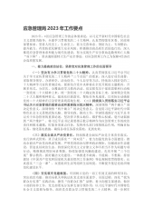 应急管理局2023年上半年工作总结和下半年工作计划今年以来,x市深入学习贯彻习近平总书记关于安全生产和防灾减灾救灾重要论述,不断健全完善安全生产责任体系,夯实应急管理基层基础,着力提升防灾减灾救灾能力,守住安全底线,筑牢灾害防线,实现了生产安全零事故,整体水平有提升的总体目标,成功应对了各类自然灾害,为全市经济社会发展提供坚强的应急管理保障一、主要工作进展情况(一)坚持抓统筹、促整改,不断深化重大事故隐患专项排查整治一是全面部署,整体推进。x市专项排查整治工作部署以后,先后主持召开动员部署会、市委常委会和市政府常务会议,部署安排专项整治工作,听取汇报,解决问题。市安委会认真谋划制定实施方案,逐...