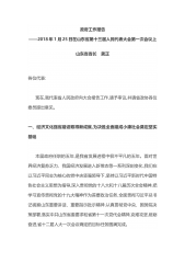 政府工作报告——2018年1月25日在山东省第十三届人民代表大会第一次会议上山东省省长 龚正各位代表:现在,我代表省人民政府向大会报告工作,请予审议,并请省政协各位委员提出意见。一、经济文化强省建设取得新成就,为决胜全面建成小康社会奠定坚实基础本届政府任职的五年,是我省发展进程中很不平凡的五年。面对世界经济复苏乏力、我国经济发展进入新常态等一系列深刻变化,我们在以习近平同志为核心的党中央坚强领导下,坚持以习近平新时代中国特色社会主义思想为指导,深入贯彻党的十八大和十八届历次全会精神,把学习宣传贯彻党的十九大精神作为首要政治任务,全面贯彻习近平总书记视察山东重要讲话、重要指示批示精神,认真贯彻党...