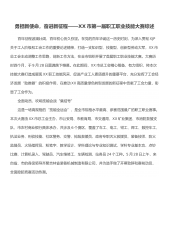 勇担新使命,奋进新征程——XX市第一届职工职业技能大赛综述百年征程波澜壮阔,百年初心历久弥坚。在党的百年华诞这一历史时刻,为深入贯彻XJP关于工人阶级和工会工作的重要论述精神,打造一支知识型、技能型、创新型劳动大军,XX市总工会主动调整工作思路,创新工作方法,在全市组织开展了首届职工职业技能大赛。大赛历时四个月,于9月28日圆满落下帷幕。在此期间,XX市总工会精心筹备,有力组织,将本次技能大赛打造成展现XX职工技能风采、促进产业工人素质提升的重要平台,充分发挥了工会经济发展“助推器”的积极作用,在推动XX高质量绿色转型发展的新征程中贡献了工会力量,彰显了工会作为。全面动员,吹响技能会战“集结号...