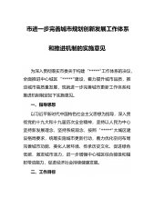 市进一步完善城市规划创新发展工作体系和推进机制的实施意见