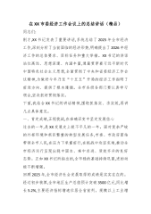 在XX市委经济工作会议上的讲话(精品)1同志们:今天,我们召开市委经济工作会议,主要任务是,坚持以习近平新时代中国特色社会主义思想为指导,深入贯彻中央及省委经济工作会议精神,总结2025年全市经济工作,分析当前经济形势,部署2026年经济工作任务。下面,我讲几点意见。一、肯定成绩总结经验,坚定高质量发展的信心决心刚刚过去的2025年,是全面贯彻落实党的二十大精神的关键之年,也是“十四五”规划承上启下的攻坚之年。面对复杂严峻的外部环境和艰巨繁重的改革发展稳定任务,全市上下坚持以习近平总书记对XX工作的重要讲话重要指示精神为根本遵循,完整、准确、全面贯彻新发展理念,聚焦“六大战略定位”,创造性运用...