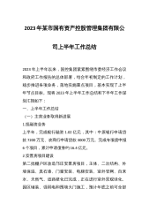 2023年某市国有资产控股管理集团有限公司上半年工作总结