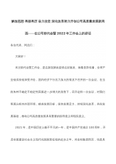 解放思想 再接再厉 奋力攻坚 深化改革努力开创公司高质量发展新局面——在公司职代会暨2022年工作会上的讲话