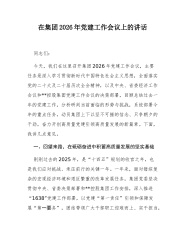 在XX控股煤业集团2026年党建工作会议上的讲话(精品)同志们:今天,我们在这里召开集团2026年党建工作会议,主要任务是深入学习贯彻习近平新时代中国特色社会主义思想,全面落实党的二十大及二十届历次全会精神,以及中央、省委经济工作会议和XX控股集团党建工作会议的决策部署,回顾总结过去一年的党建工作,分析研判当前面临的形势与挑战,系统部署今年的重点任务,动员集团上下以坚不可摧的信念、只争朝夕的干劲,奋力开创高质量党建引领高质量发展的新篇章。下面,我讲几点意见。一、回望来路,在砥砺奋进中积蓄高质量发展的坚实基础刚刚过去的2025年,是“十四五”规划的收官之年,也是我们应对挑战、承压前行的关键一年。...