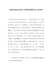 在XX县委常委会(扩大)会议暨县委务虚会上的讲话(精品)同志们:今天,我们召开县委常委会(扩大)会议暨县委务虚会,主要任务是深入学习贯彻中央经济工作会议和省委、市委相关会议精神,总结回顾2025年工作,分析研判当前形势,谋划部署2026年及“十五五”时期的发展思路和重点任务。刚才,各位同志围绕全县发展大局,立足各自工作领域,谈了认识、讲了思路、提了建议,讲得都很好,有思考、有深度、有见地,体现了强烈的大局意识和责任担当。听了大家的发言,我深受启发,也进一步增强了我们推动XX跨越式高质量发展的信心和决心。这次会议既是一次回顾总结会,更是一次谋划未来的务虚会、思想统一的研讨会。务虚是为了更好地务实...