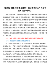 XX局202X年度党员领导干部民主生活会个人发言提纲(五个带头)