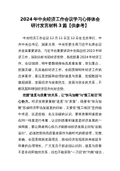 2024年中央经济工作会议学习心得体会研讨发言材料(七篇)与2023年党支部工作总结及2024年工作计划(10篇)供参考