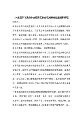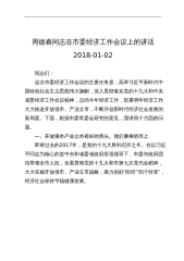 周德睿同志在市委经济工作会议上的讲话2018-01-02同志们:这次市委经济工作会议的主要任务是,高举习近平新时代中国特色社会主义思想伟大旗帜,深入贯彻落实党的十九大和中央省委经济工作会议精神,总结今年经济工作,部署明年经济工作大力推进开放强市、产业立市,不断开创新时代经济社会发展的新局面。下面,根据市委常委会研究的意见,我讲四个方面的问题。一、开放强市产业立市有好的势头,我们要乘势而上即将过去的2017年,是党的十九大胜利召开之年。在以习近平同志为核心的党中央和省委省政府坚强领导下,市委市政府团结带领全市人民,全面贯彻党的十九大和市第七次党代会精神,大力实施开放强市、产业立市战略,着力抓好“...