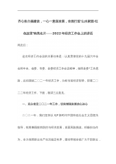齐心协力搞建设,一心一意谋发展,全面打造“山水家园·红色故里”响亮名片——2022年经济工作会上的讲话同志们:这次经济工作会议的主要任务是:认真贯彻党的十九届六中全会和中央、省委、市委、县委经济工作会议精神,按照县委*工作思路,总结我镇二〇二一年经济工作,分析当前经济形势,部署二〇二二年经济工作。下面,我讲三点意见。一、充分肯定二〇二一年工作,切实增强发展信心决心二〇二一年,我们坚持以XJP新时代中国特色社会主义思想为指导,统筹兼顾疫情防控与经济发展,直面风险挑战,积极担当作为,全力保障群众生产生活稳定有序,团结带领全镇广大干部群众,齐心协力,奋发有为,各项工作有条不紊的推进,经济社会稳定发展...