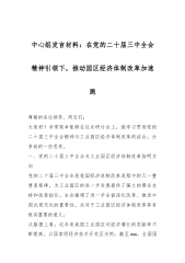 中心组发言材料:在党的二十届三中全会精神引领下,推动园区经济体制改革加速跑
