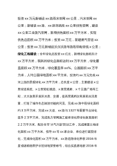 投资xx万元新铺设xx路雨水管网xx公里,污水管网xx公里;新铺设xx路、xx路等路段xx公里供热管网,建设xx公里工业蒸汽管网,新增供热面积xx万平方米,实现供热总面积xx万平方米;投资xx万元,新建燃气管道xx公里;投资xx万元新铺设沃尔沃路等路段弱电管线x公里;绿化工程建设:全年绿化总投资xx亿元,新增绿化面积共计xx万平方米,我区的绿化总面积达到xx万平方米,绿化覆盖面积xx万平方米,绿化覆盖率xx%。公园面积xx万平方米,人均公园绿地面积xx平方米。投资约xx万元完成xx河上游的景观绿化xx万平方米,总长度x公里,主要建设x公里绿道系统、x公里彩虹栈道、x座景观桥、x个主题广场等工程...