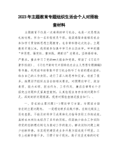 2023年主题教育专题组织生活会个人对照检查材料主题教育不仅是一次难得的学习机会,也是一次思想洗礼的过程。作为一名年轻党员干部,我深感荣幸能够有机会参加学习贯彻新思想主题教育,也非常珍惜这次机会。主题教育开展以来,我积极参加集中学习并主动自学,牢牢把握“学思想、强党性、重实践、建新功”总要求,坚持高标准、严要求,重点学习了党的**大报告和党章,研读了《习近平著作选读》、《习近平新时代中国特色社会主义思想专题摘编》等书籍,利用读书班等集中学习机会聆听了专家的理论宣讲,结合自己的工作实际,进行了深入的思考和反省,收获了很多。按照召开组织生活会的相关要求,对照理论学习、政治素质、能力本领、担当作为、...