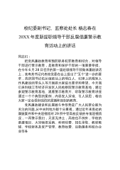 校纪委副书记、监察处处长杨志春在20XX年度新提职领导干部反腐倡廉警示教育活动上的讲话同志们:把党风廉政教育和预防职务犯罪教育相结合,对领导干部进行警示教育,是教育和保护干部的一项重要举措。在今年6月28日召开的新一届处级领导干部集体廉政谈话上,袁寿其书记代表校党委在会上提出了“五个”进一步的要求,高庆国书记也从做政治上的明白人、纪律上的规矩人作风建设的带头人等方面跟大家提出要求和希望。今天我们来到镇江市经济开发区人民检察院警示教育基地,通过参观警示教育基地、观看警示教育片、听取警示教育讲座通过一个个典型的案例,内容发人深省、引人深思,相信大家一定会受到强烈的震撼和深刻的教育。党风廉政建设和反...