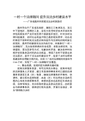 一村一个法律顾问提升法治乡村建设水平——广东省惠州市探索法治乡村新路径惠州市位于广东省东南部,属珠江三角洲东北、东江中下游地区,辖两区三县,设有大亚湾经济技术开发区和仲恺高新技术产业开发区两个国家级开发区。针对乡村法律纠纷频发、农村社会利益冲突凸显的现实需求,结合农村基层干部和村民法治意识有待提升与法律知识相对缺乏的现实,惠州市积极落实法治为民行动,全面推行“一村一法律顾问”,充分发挥律师的专业优势,采取法律咨询、法律援助、普法宣讲等方式,化解农村矛盾、解决各种纠纷维护农民集体及村民的合法权益,增强了农村干部群众的法治意识,提升了法治乡村建设水平,促进了乡村治理体系建设和治理能力现代化。目前5...
