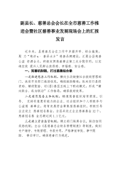 副县长、慈善总会会长在全市慈善工作推进会暨社区慈善事业发展现场会上的汇报发言近年来,县慈善总会在工作中多措并举、综合施策,聚力“慈济x·善泽水乡”慈善品牌建设,汇聚全县慈善公益资源合力,积极发挥慈善事业第三次分配作用,以实绩实效提升人民群众获得感、幸福感、安全感。一、完善机制链,打出慈善组合拳一是搭建慈善工作机制。横向主动链接社会救助管理部门、扶贫开发部门救助信息,确保救助精准;纵向实行县级资助、镇级配套、村(居)基层互助上下联动模式,形成“横向联合、纵向联动”工作格局,确保救助效果。二是建育慈善主体机制。畅通慈善组织培育渠道,引导、支持有意愿有能力的企业、社会组织和个人积极参与公益慈善事业。...