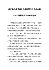 传统融资模式难以为继政策手段亟待创新—城市更新项目资金难题怎解