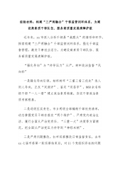 经验材料:构建“三严两融合”干部监管闭环体系,为建设高素质干部队伍、服务高质量发展清障护航近年来,xx市深入分析干部易“栽跟头”的情形和环节,探索构建“三严两融合”干部监管闭环体系,强化干部监督管理,激发干事创业活力,为建设高素质干部队伍、服务高质量发展清障护航。“强化导向”与“传导压力”从严,树牢政治监督“风向标”一是强化导向引领。始终树牢“三重三看三优先”选人用人导向,正反“双测评”、鉴定“双签字”,860余名科级干部“一人一册”建立政治素质档案,夯实干部政治素质考察根基。二是逐级压实责任。市乡两级全部编制干部权责清单,动态掌握党员干部在落实“两个维护”、严肃党内政治生活、履行全面从严治党...