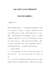 集团有限公司2025年度民主生活会领导班子对照检查材料(五个带头)根据市委和市国资委党委关于召开2025年度民主生活会的统一部署,集团有限公司领导班子紧扣会议主题,在深入开展理论学习研讨、广泛征求意见建议、坦诚进行谈心谈话的基础上,认真对照“带头强化政治忠诚、提高政治能力”等五个方面内容,深入查摆了班子存在的突出问题,深刻剖析了问题产生的根源,并明确了下一步的整改方向和措施。现将对照检查情况报告如下。一、存在的主要问题(一)在带头强化政治忠诚、提高政治能力方面班子始终将政治建设摆在首位,深刻领悟“两个确立”的决定性意义,但在对标对表更高标准时,仍发现存在一些差距和不足。一是政治判断力和敏锐性仍...