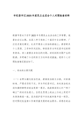 XX医疗康养(集团)有限责任公司党委书记2025年度民主生活会个人对照检查材料(五个带头)按照本次民主生活会的要求,本人在深入学习党的二十届三中、四中全会精神和习近平总书记重要讲话、重要指示批示精神,特别是关于作风建设的重要论述的基础上,紧扣会议主题,围绕“五个带头”要求,通过群众提、自己找、上级点、互相帮等方式,深入查摆自身存在的问题,深刻剖析问题根源,明确了今后的努力方向和整改措施。现将个人对照检查情况报告如下。一、存在的主要问题(一)在带头强化政治忠诚、提高政治能力方面本人能够深刻领悟“两个确立”的决定性意义,在思想上政治上行动上同以习近平同志为核心的党中央保持高度一致,但在对标对表更高...