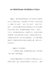 小学党支部2025年度党支部书记抓党建工作述职报告(精品)2025年,在县委教育工委的坚强领导下,本人作为党支部书记,始终牢记并坚决履行抓党建“第一责任人”职责,深入学习贯彻习近平新时代中国特色社会主义思想和党的二十大精神,紧密围绕新时代党的建设总要求和立德树人根本任务,以巩固拓展主题教育成果为主线,以增强党支部政治功能和组织功能为重点,坚持党建工作与教育教学中心工作同谋划、同部署、同落实,为推动学校各项事业高质量发展提供了坚实的政治引领和组织保障。现将全年履职情况报告如下。一、年度主要工作与成效(一)坚持政治铸魂,思想理论武装达到新高度始终将坚定拥护“两个确立”、坚决做到“两个维护”作为最高...