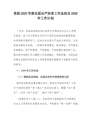党组2025年度全面从严治党工作总结及2026年工作计划