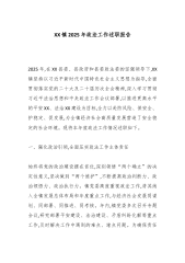 XX镇2025年政法工作述职报告2025年,在XX县委、县政府和县委政法委的坚强领导下,XX镇坚持以习近平新时代中国特色社会主义思想为指导,全面贯彻落实党的二十大及二十届历次全会精神,深入学习贯彻习近平法治思想和中央政法工作会议部署,以推进更高水平的平安XX、法治XX建设为目标,全力以赴防风险、保安全、护稳定、促发展,为全镇经济社会高质量发展营造了安全稳定的社会环境。现将本年度政法工作情况述职如下。一、强化政治引领,全面压实政法工作主体责任始终将党的政治建设摆在首位,深刻领悟“两个确立”的决定性意义,坚决做到“两个维护”,不断提高政治判断力、政治领悟力、政治执行力。镇党委高度重视政法工作,将其...