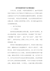 对县纪委监委班子、班子成员评价和存在问题不足及工作建议的谈话提纲一、对县纪委监委班子的评价县纪委监委班子在上级纪委监委和县委的坚强领导下,始终坚定不移地以xxx为指引,深入且全面地贯彻xxx精神,以高度的责任感和使命感,认真落实全面从严治党战略方针。聚焦主责主业,充分发挥监督保障执行、促进完善发展的关键作用,如同坚实后盾一般,为全县经济社会高质量发展筑牢了坚强纪律保障,在全县各项事业推进过程中发挥了不可替代的重要作用。(一)政治站位较高班子成员展现出了卓越的政治素养和坚定的政治立场,能够深刻领悟“两个确立”的决定性意义,将其作为行动的根本遵循,切实增强“四个意识”、坚定“四个自信”做到“两个维...