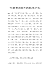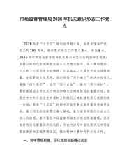 市场监督管理局2026年机关意识形态工作要点2026年是“十五五”规划的开局之年,也是中国共产党成立的105周年,做好意识形态工作意义重大、责任重大。2026年市市场监督管理局机关意识形态工作的指导思想是:坚持以新时代中国特色社会主义思想为指导,深入贯彻党的二十大和二十届历次全会精神,认真落实二十届四中全会战略部署,全面贯彻文化思想,深刻领悟“两个确立”的决定性意义,增强“四个意识”、坚定“四个自信”、做到“两个维护”。要紧紧围绕总书记关于树立和践行正确政绩观的重要论述,按照党中央关于在全党开展树立和践行正确政绩观学习教育的统一安排,聚焦“十五五”时期市场监管事业高质量发展首要任务,着力用党的...