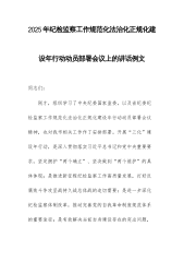 2025年纪检监察工作规范化法治化正规化建设年行动动员部署会议上的讲话例文
