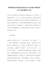 市委网络安全和信息化委员会办公室2026年理论学习中心组专题学习计划为深入学习贯彻习近平新时代中国特色社会主义思想,全面落实党的二十大及二十届历次全会精神,巩固拓展主题教育成果,持续提升领导班子和领导干部的理论素养、政治能力与履职本领,切实用党的创新理论武装头脑、指导实践、推动工作,根据中央、省委和市委关于理论学习中心组学习的部署要求,结合我市网信工作实际,制定本年度专题学习计划。一、指导思想坚持以马克思列宁主义、毛泽东思想、邓小平理论、“三个代表”重要思想、科学发展观为指导,全面贯彻习近平新时代中国特色社会主义思想,深刻领悟“两个确立”的决定性意义,增强“四个意识”、坚定“四个自信”、做到“...