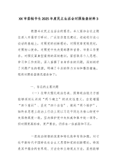 XX市委秘书长2025年度民主生活会对照检查材料3 根据本次民主生活会的要求,本人紧扣会议主题在深入开展学习研讨、广泛征求意见建议、坦诚进行谈心谈话的基础上,对照党的创新理论,对照党章党规党纪,对照初心使命,对照党中央决策部署和省委、市委工作要求,对照反面典型案例的深刻教训,紧密联系个人思想、学习和工作实际,深入查摆了自身存在的问题,深刻剖析了问题产生的根源,明确了今后的努力方向和整改措施。现将对照检查情况报告如下: 一、存在的主要问题 (一)在带头强化政治忠诚、提高政治能力方面能够深刻认识到“两个确立”的决定性意义,自觉增强“四个意识”、坚定“四个自信”、做到“两个维护”,...
