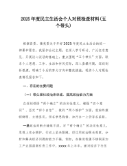 派驻纪检监察组组长2025年度民主生活会个人对照检查材料(带案例)按照市委和市纪委监委关于开好2025年度民主生活会的统一部署,我紧密联系个人思想、工作和生活实际,对照“五个带头”要求,深入查摆自身存在的问题,深刻剖析问题根源,明确了今后的努力方向和整改措施。现将个人对照检查情况报告如下。一、存在的问题(一)在带头强化政治忠诚、提高政治能力方面。我始终把对党绝对忠诚作为首要政治品质,深刻领悟“两个确立”的决定性意义,但在对标对表、知行合一上仍有差距。一是在政治判断力上,洞察能力不够敏锐。对交通运输领域工作中的政治因素和政治影响认识不深,有时未能从政治高度和全局视野来审视和谋划纪检监察工作。例如...