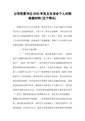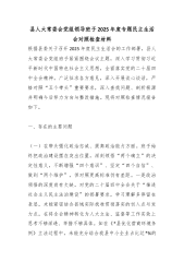 县人大常委会党组领导班子2025年度专题民主生活会对照检查材料根据县委关于召开2025年度民主生活会的工作部署,县人大常委会党组班子紧紧围绕会议主题,深入学习贯彻习近平新时代中国特色社会主义思想,全面落实党的二十届四中全会精神,广泛征求各方意见,深入开展谈心谈话,严格对照“五个带头”重要要求,深入查找问题、剖析根源并明确今后努力方向与整改措施。现将对照检查情况报告如下。一、存在的主要问题(一)在带头强化政治忠诚、提高政治能力方面。班子始终把政治建设摆在突出位置,深刻领悟“两个确立”的决定性意义,不断增强“四个意识”、坚定“四个自信”、做到“两个维护”,但对照更高标准仍有差距。一是政治领悟的深度...