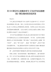在XX单位中心组集体学习《习近平谈治国理政》第五卷时的总结讲话