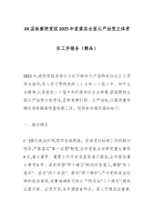 XX县检察院党组2025年度落实全面从严治党主体责任工作报告(精品)2025年,我院党组坚持以习近平新时代中国特色社会主义思想为指导,深入学习贯彻党的二十大和二十届三中、四中全会精神,认真落实二十届中央纪委四次全会部署,紧紧围绕全面从严治党主体责任,坚持党建引领、从严治检,以高质量党建引领保障高质量检察工作。现将有关情况报告如下:一、基本情况(一)强化政治引领,筑牢忠诚根基。坚持党对检察工作的绝对领导,严格落实"第一议题"制度,全年党组会议研究重大事项X次,重大案件、重要工作及时向县委请示报告,全年报告重大事项X件。深刻领悟"两个确立"的决定性意义,增强"四个意识"、坚定"四个自信"、做到"两...