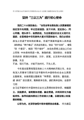 学习贯彻习近平新时代中国特色社会主义思想主题教育研讨发言材料坚持“三以三为”践行初心使命党的二十大报告指出:“全党全军全国各族人民要紧密团结在党中央周围,牢记空谈误国、实干兴邦,坚定信心、同心同德,埋头苦干、奋勇前进,为全面建设社会主义现代化国家、全面推进中华民族伟大复兴而团结奋斗。我们必须在政治上忠诚于党和党的事业,忠诚于国家利益和人民利益深刻领会“两个确立”的决定性意义,坚定“四个自信”、增强“四个意识"、做到“两个维护”,自觉在思想上政治上行动上同党中央保持高度一致,准确把握、深刻领会、全面落实党的创新理论和路线、方针、政策,以及党中央的决策部署,矢志不渝、笃行不怠,才能不负时代、不负人...