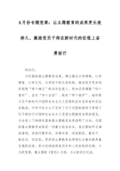 3月份专题党课:让主题教育的成果更长效持久,激励党员干部在新时代的征程上奋勇前行