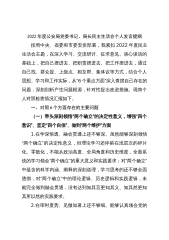 市委常委、政法委书记领导干部民主生活会对照检查材料(六个带头)按照全市《关于做好2022年度民主生活会有关工作的通知》要求,积极参加学习研讨,紧密联系思想和工作实际,列出了问题清单,进行了深刻的自我剖析,并有针对性地提出了整改措施。最近一段时间,分别与*名常委同志、*名政法系统主要负责人和*名政法委党支部党员代表进行谈心谈话,广泛征求意见建议,累计征求到意见建议*条。现将对照检查情况报告如下:一、存在的主要问题(一)带头深刻领悟“两个确立”的决定性意义,增强“四个意识”、坚定“四个自信”、做到“两个维护”方面一是带头深刻感悟“两个确立”的决定性意义不深不透。在日常学习中对“两个确立”满足于知道...