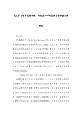 2024年党纪学习教育党课讲稿:“六大纪律”专题党课与把纪律建设摆在更突出的位置【两篇文】2024年党纪学习教育党课讲稿:“六大纪律”专题党课同志们:本次党纪学习教育强调要抓住学习重点,在学习贯彻《中国共产党纪律处分条例》上下功夫见成效。作为规范党组织和党员行为的基础性法规,《条例》在党内法规体系中发挥着重要作用。2023年对《条例》进行修订,是促进全党深刻领悟“两个确立”的决定性意义、坚决做到“两个维护”的必然要求,是坚持问题导向、用严明的纪律管全党治全党的现实需要,是总结从严管党治党经验、实现与时俱进的实践要求。开展好党纪学习教育,要原原本本学,坚持个人自学与集中学习相结合,紧扣党的政治纪...