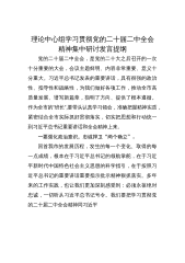 理论中心组学习贯彻党的二十届二中全会精神集中研讨发言提纲党的二十届二中全会,是党的二十大之后召开的一次十分重要的大会,会议主题鲜明、内容非常重要、意义十分重大。习近平总书记发表的重要讲话,具有很强的政治性、指导性和战略性,为我们做好各项工作,推动全市高质量发展、谱写新篇章,指明了方向、提供了根本遵循。作为全市的“班长”,要带头认真学习领会,准确把握精神实质,紧密结合全市实际抓好贯彻落实,切实把思想和行动统一到习近平总书记重要讲话和全会精神上来。一要强化政治意识,忠诚捍卫“两个确立”。回首我市的发展历程,发生的每一个变化、取得的每一点成绩,根本在于习近平总书记的领航掌舵,在于习近平新时代中国特色...