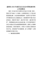 副镇长2022年度民主生活会对照检查材料上年度整改按照《XX镇2022年度民主生活会工作方案》要求,我深入学习党的二十大精神,认真领悟党的二十大提出的新思想新论断、作出的新部署新要求,加深对习近平新时代中国特色社会主义思想的认识,深刻领悟“两个确立”的决定性意义,增强“四个意识”、坚定“四个自信”、做到“两个维护”。同时围绕本次民主生活会的主题,学习市委常委班子2022年度民主生活会典型案例剖析材料,检视个人问题整改落实情况,坚持问题导向,对照六个方面深入查摆自身存在不足,深刻剖析产生问题根源,进一步明确下一步整改措施和今后努力方向。一、整改落实完成情况根据2021年度党史学习教育专题民主生活...