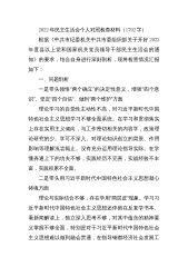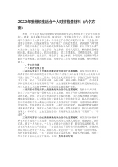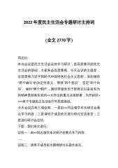 2022年民主组织生活会对照检查材料(全文6036字)按照党委关于召开年民主组织生活会相关要求,我系统学习了党的二十大精神、《习近平谈治国理政》第四卷等内容,为开好这次专题民主生活会打牢了思想基础。同时,我紧密联系思想工作实际,深入开展谈心谈话、交流思想、交换意见,对照个方面,深入查找了自身存在的不足,剖析了问题根源,明确了下步努力方向。现对照检查如下。一、查摆的问题(一)在带头深刻领悟“两个确立”的决定性意义,增强“四个意识”、坚定“四个自信”、做到“两个维护”方面一是关于做到“两个维护”,存在“做”的非常坚决,但“到”的质量、效果有时不特别理想的问题。比如,在落实习近平总书记一些重要讲话精...