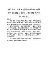 辅导讲稿:深入学习贯彻新修订的《中国共产党纪律处分条例》,将纪律要求内化于心外化于行同志们:新修订的《中国共产党纪律处分条例》作为规范党组织和党员行为的基础性法规,进一步严明政治纪律和政治规矩,对推动党员干部更加深刻领悟“两个确立”的决定性意义、更加坚决做到“两个维护”有着重要意义。要以学习贯彻《条例》为契机,准确运用“四种形态”,进一步明确容错纠错、澄清正名的情形、幅度和程序,推动“三个区分开来”规范化,既防止问责不力、执纪执法“宽松软”,又防止问责泛化简单化、挫伤干部积极性,促进从严管理监督和激励担当作为高度统一。今天,结合对条例的解读,给大家做一次专题辅导。一、进一步严明政治纪律和政治规...
