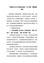2022年市政协副主席、XX区委书记民主生活会个人对照检查材料(6503字)按照市纪委、市委组织部关于开好2022年度民主生活会的有关要求,围绕本次民主生活会的主题,我认真学习党的二十大报告原文、党章和习近平总书记在党的二十届一中全会上的重要讲话精神,深刻领悟“两个确立”的决定性意义,自觉增强“四个意识”、坚定“四个自信”、做到“两个维护”,联系实际主动把自己摆进去、把职责摆进去、把工作摆进去,广泛听取各方意见,深入查找突出问题,深刻进行对照剖析,明确了今后的努力方向和整改措施。现将个人对照检查情况报告如下:一、存在的主要问题(一)在带头深刻感悟“两个确立”的决定性意义,增强“四个意识”、坚定...