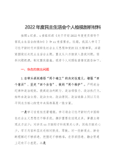 2022年度七个方面民主生活会对照检查材料(3500字)治疆方略