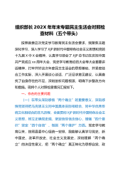 组织部长2021年度党史学习教育五个带头专题民主生活会对照检查材料
