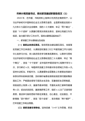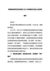 市委组织部机关党支部在2022年度组织生活会上的述职报告同志们:现在我代表支部委员会向大会述职,不当之处,敬请批评指正。2022年,中共XXX市委组织部支部委员会在市直属机关工委的坚强领导下,坚持以习近平新时代中国特色社会主义思想为指导,深入贯彻落实党的XX大精神、习近平总书记视察XX重要讲话精神,全面贯彻落实新时代党的建设总要求和新时代党的组织路线,衷心拥护“两个确立”忠诚践行“两个维护”,严格落实机关党建各项工作任务不折不扣落实党要管党、全面从严治党要求,切实增强组织部支部党组织的凝聚力和战斗力,强化党支部政治功能充分发挥党支部战斗堡垒作用。一、强化政治建设,坚定政治方向,忠诚践行“两个维...